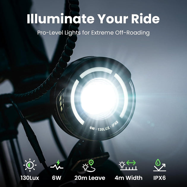 Get ready to conquer any terrain with the Finbike M50 electric mountain bike, your ticket to effortless adventures. Its advanced 4-link suspension and robust 27.5-inch tires make every ride silky smooth, absorbing bumps like a champ. Power your journeys with a high-capacity 36V 13Ah battery, delivering an impressive 43.5-mile range and recharging in just 3-4 hours. Stay sharp on the go with the smart LCD display, handy USB port, and a brilliant 130 Lux headlight, ensuring you’re always ready for fun. Wheel Size 27.5 inches Tire Width 2.35 inches Battery Type 36V 13Ah Removable Lithium-Ion Max Range 43.5 miles Charging Time 3-4 hours Suspension System 4-Link Full Suspension Gear System Shimano 7-Speed Derailleur Brake Type Dual Disc Brakes with Power Cut-off Headlight Brightness 130 Lux LED Display Features LCD Screen with USB Charging Port Maximum Load Capacity 330 lbs Frame Material Iron Bike Classification Electric Mountain Bike Recommended Age Adult Included Accessories Charger, Battery Keys (2), User Manual, Tool Kit, Pump