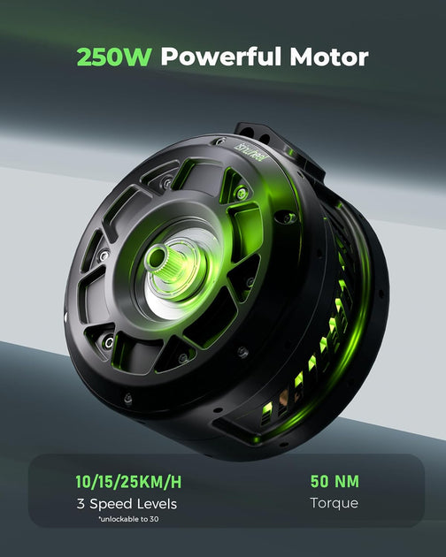 Zip around town with the Finbike U3, your new favorite foldable electric companion! Its quick-charge battery and three riding modes make every journey a breeze, whether you’re cruising or tackling hills. Enjoy a smooth and safe ride thanks to dual disc brakes, a front shock absorber, and comfy anti-slip tires. When your adventure ends, simply fold it up and stash it away until next time! Motor Power 250W Brushless Top Speed 15.5 mph (25 km/h) Pure Electric Range 18.6-21.7 miles (30-35 km) Pedal Assist Range 24.8-28 miles (40-45 km) Battery Type 36V 7.8Ah Lithium-ion Charge Time 2-3 hours Wheel Size 16 inches Brake System Dual Disc & Electronic Suspension Front Fork Folded Dimensions (L x W x H) 30.3 x 18.9 x 23.8 inches Product Weight 53.9 lbs Max Rider Weight 264.5 lbs Frame Material Aluminum Alloy Water Resistance Rating IPX4 Riding Modes 3 (Pure Bike, Pedal Assist, Pure Electric)